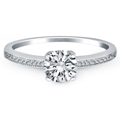 14k White Gold Classic Diamond Pave Solitaire Engagement Ring