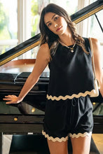 The Ric Rac trim detailed top and shorts set is a cute and stylish ensemble featuring playful Ric Rac trim detailing. This matching set offers a coordinated look with a touch of whimsy. The intricate Ric Rac trim adds a fun and eye-catching element to the design. Pair this set with sandals or sneakers for a casual and coordinated outfit that is perfect for a day out or casual gatherings.