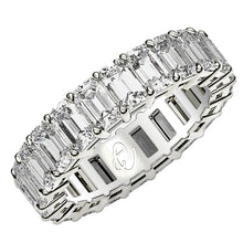 This dramatic eternity band features the traditional shine of 14k white gold, and the unparalleled sophistication of beautiful prong-set emerald cut lab grown diamonds. The light it radiates is as eternal and bright as the emotion it symbolizes. This ring belongs to the Eternity Us collection.