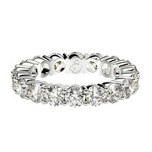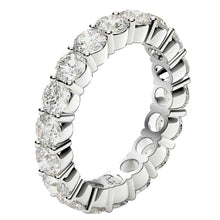 This beautiful eternity ring features the elegant simplicity of brilliant round cut lab grown diamonds in a classic, common prong style setting in 14k white gold. A timeless and sincere statement of love, it will be cherished for years to come. This ring belongs to the Eternity Us collection.