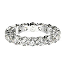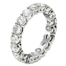 This timeless common prong eternity ring set in 14k white gold features the sparkle of brilliant round cut lab grown diamonds, while open gallery sides allow additional views of the stones. This ring belongs to the Eternity Us collection.