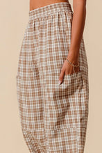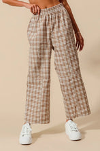 These check plaid wide leg pants feature big patch pockets and an elasticized waist for a comfortable and stylish fit. The check plaid pattern adds a classic touch to the trendy wide leg silhouette. Perfect for a chic and effortless look, these pants offer both style and functionality with their practical pockets and elasticized waistband. Elevate your outfit with these versatile and fashion-forward pants that are perfect for any occasion.